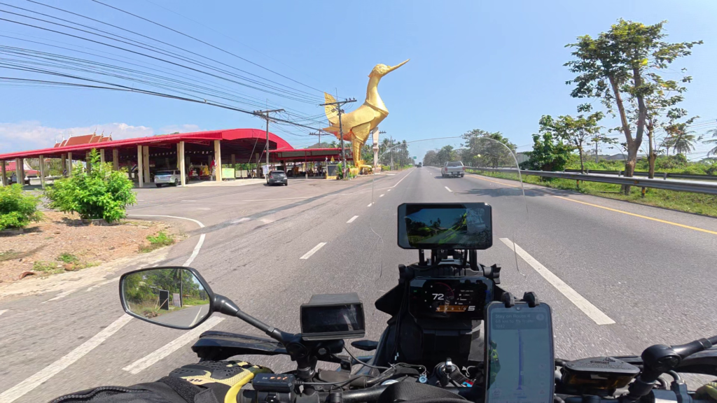 Along the way as I get close to Khiri Khan there is a golden bird stretching its beak over the road. I came up this road many years ago and the bird was there at that time as well, but I think they must have refurbished it because it looks so pristine now.